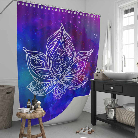 Galaxy Lotus Shower Curtain: Shower under the stars with the Galaxy Lotus curtain. It's where cosmic vibes meet earthly tranquillity, and you get to bask in the universe's bathtub.