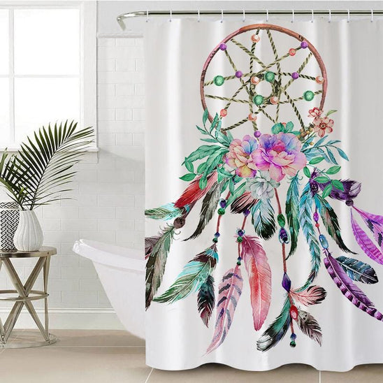 Bohemian Dreamcatcher Shower Curtain: Dreams and showers have one thing in common – they're both a great way to start and end your day! The Bohemian Dreamcatcher curtain captures your wildest dreams and brightest ideas, all while you're shampooing!