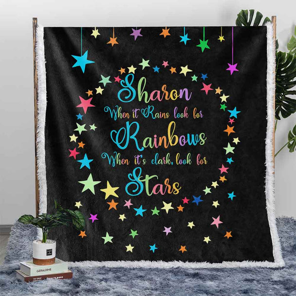 Brighten up any room with the Rainbow Stars Personalised Blanket. Its vibrant colours and starry design add a splash of joy and whimsy, making it a perfect gift that radiates positivity and comfort.