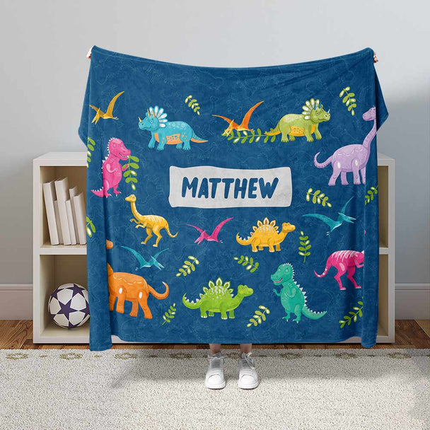 4. Cartoon Dinosaurs Personalised Squiffy Minky Blanket