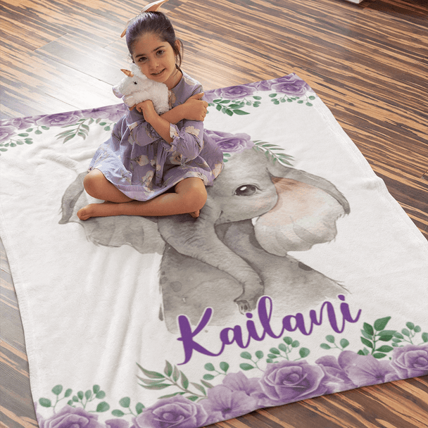 1. Baby Elephant Floral Personalised Squiffy Minky Blanket